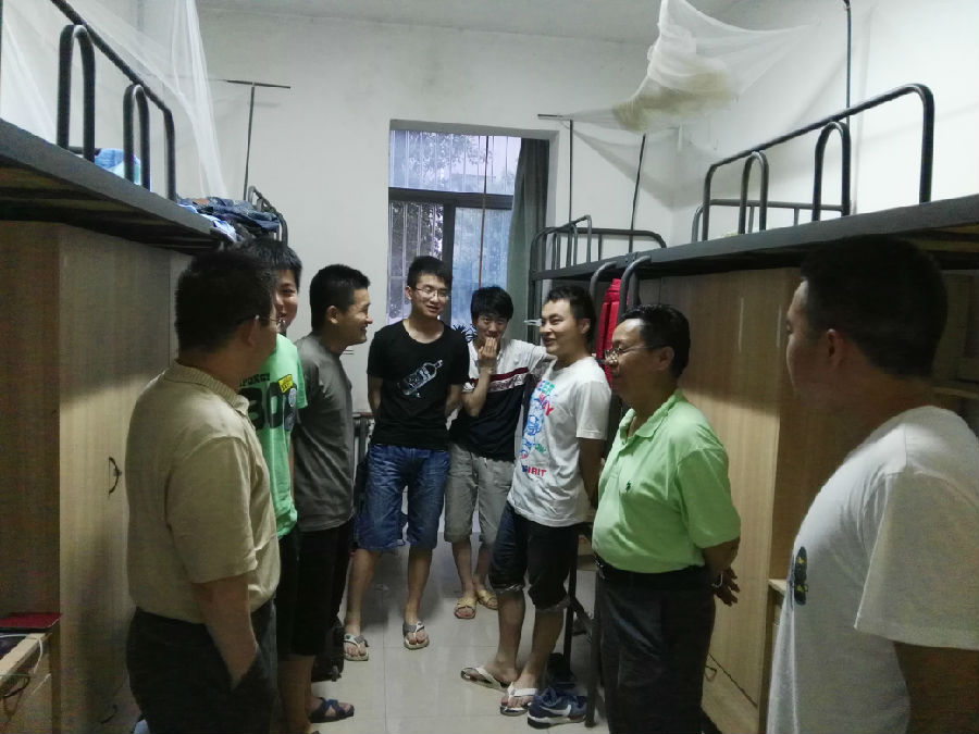 6月29、30日晚,bet36365路检测中心党委书记蔡建文、党委副书记庞秉谦、院长王魁生及学生管理办公室全体成员深入2016届本科生宿舍,看望、送别毕业生。