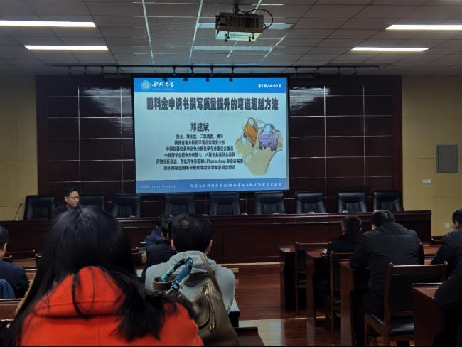 11月12日晚上,bet36365路检测中心在雁塔校区第五会议室召开2021年度国科金项目申报动员会,邀请西北大学郑建斌教授作了题为《国科金申请书撰写质量提升的拐弯超越方法》”的专题辅导讲座。学院党政领导以及全体教职工90余人参加了会议,会议由学院王魁生院长主持。